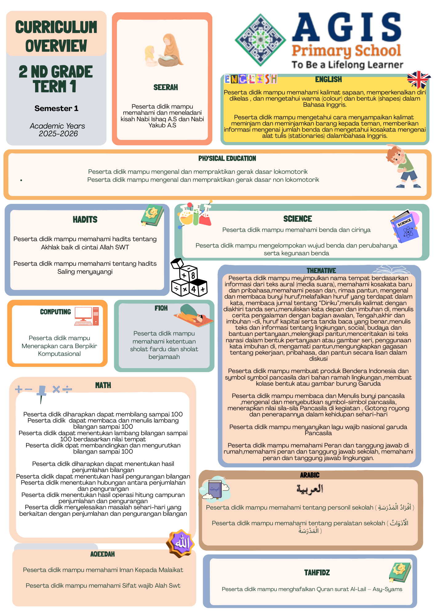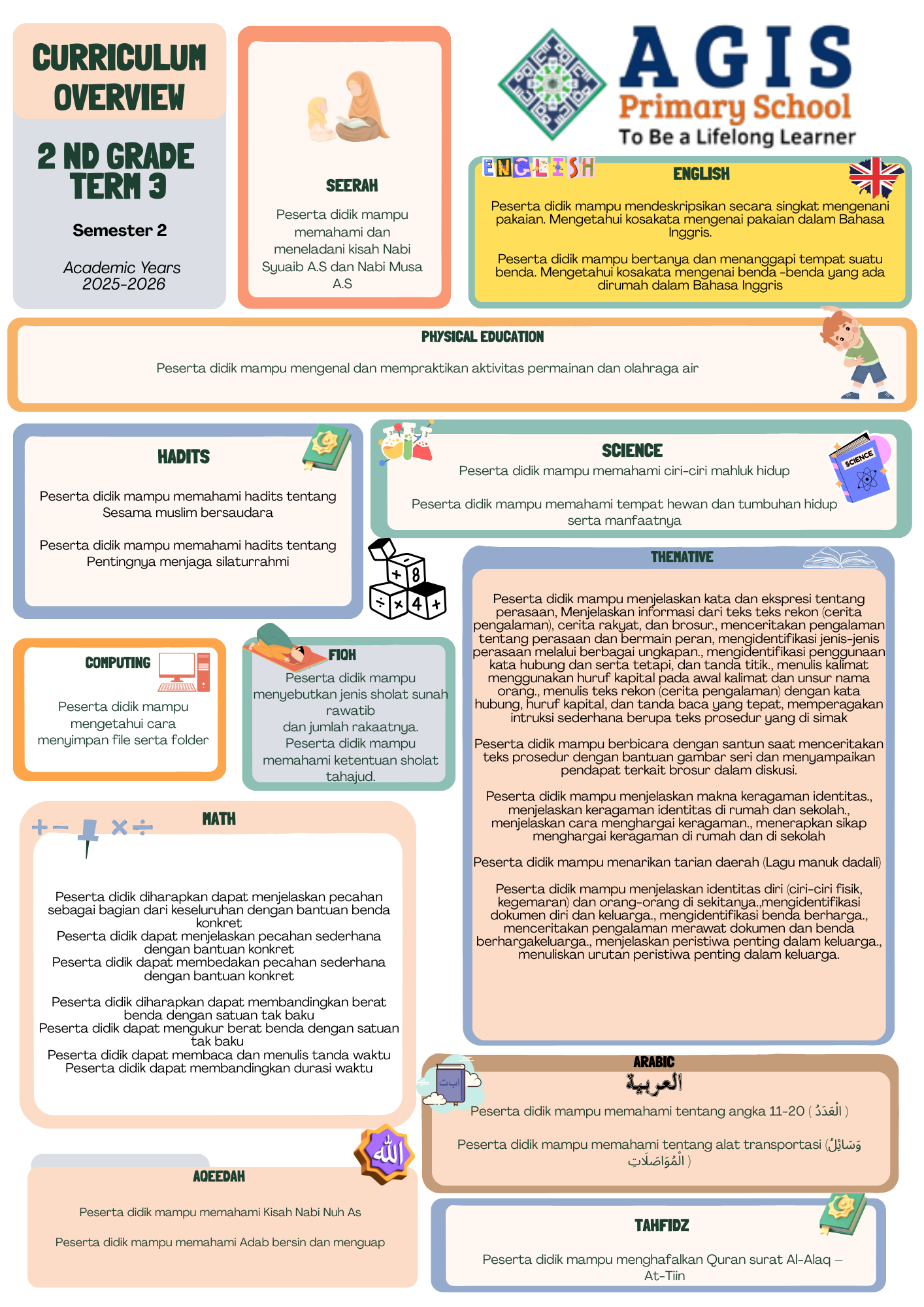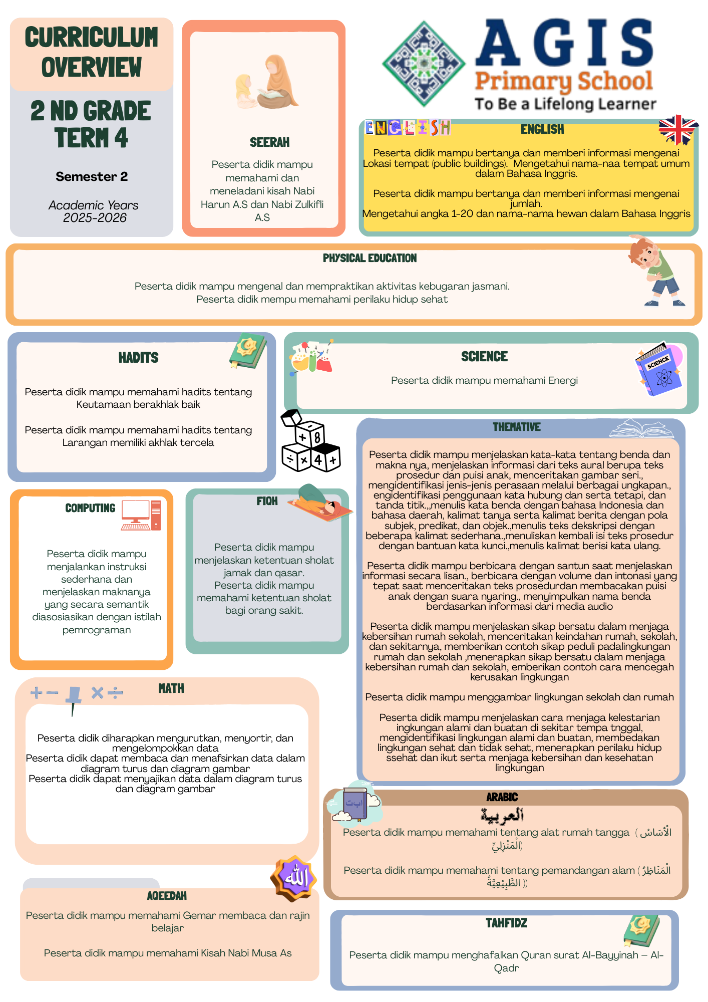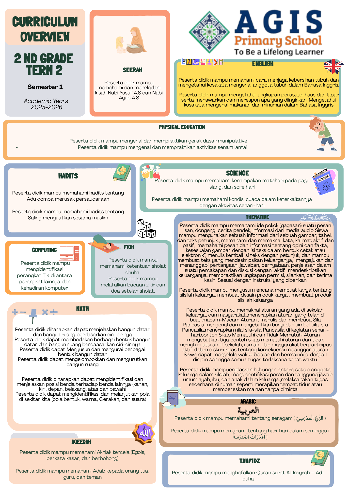 Gambaran umum rencana kegiatan pembelajaran kelas 2 yang meliputi ruang lingkup dan tujuan pembelajaran students untuk semester 1 dan 2 ditahun pelajaran 2025-2026, dapat dilihat dan klik dibawah ini :